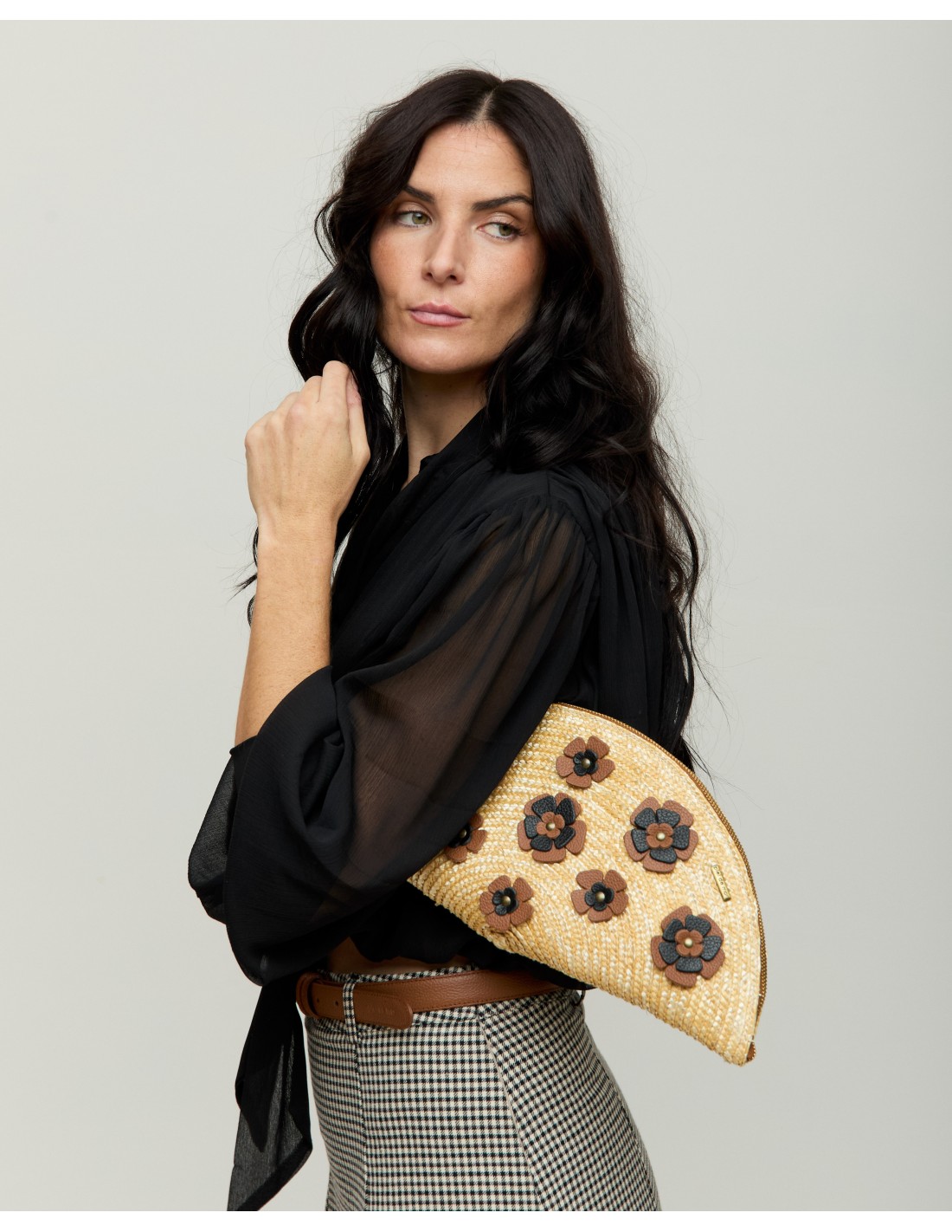 Carmen is a lightweight and feminine bag, crafted in natural fibre and decorated with leather flowers. A carefully designed piece that balances craftsmanship and character, perfect for day or evening wear.