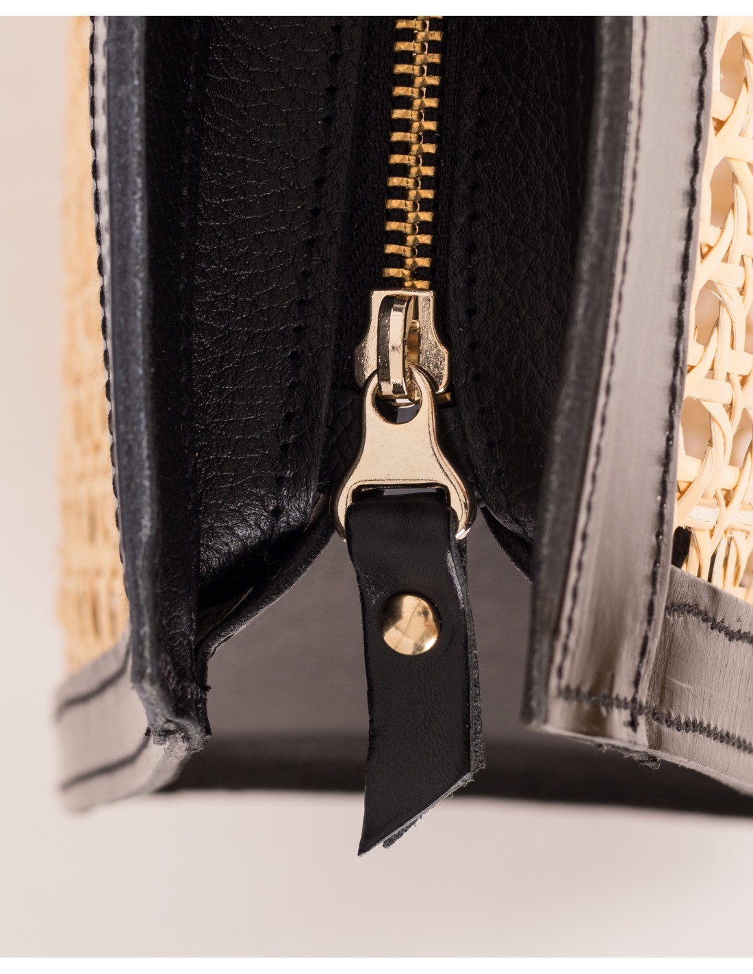 Unlined, with a fine cane weave carefully selected to keep your belongings secure. Finished with a zip closure and delivered with a dust bag.