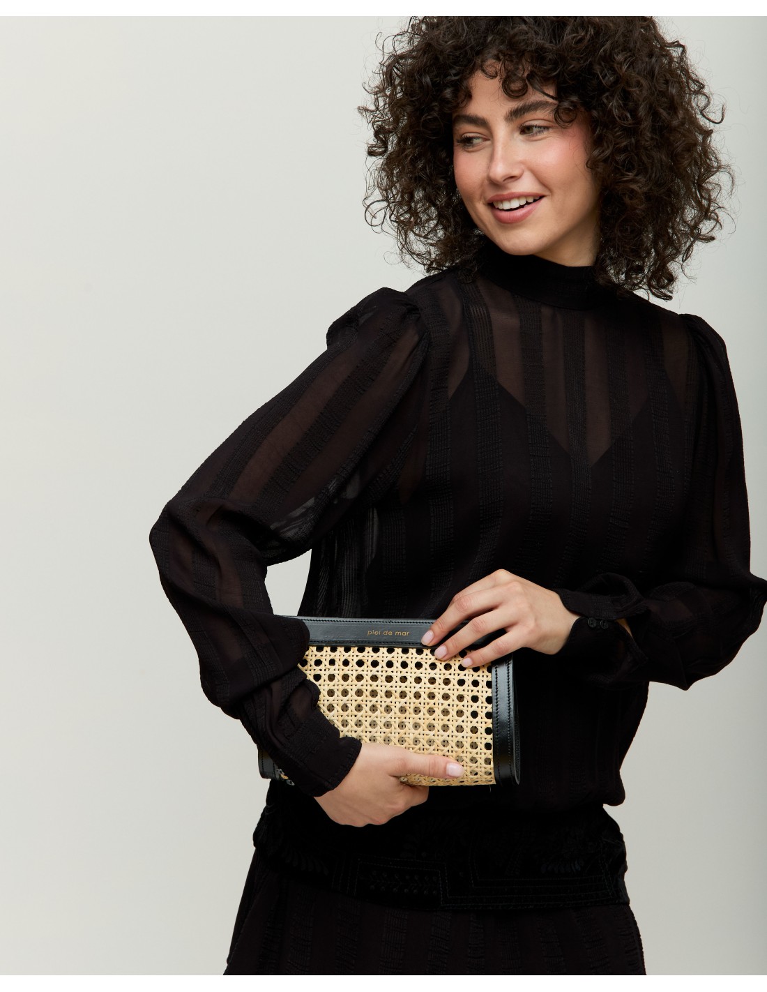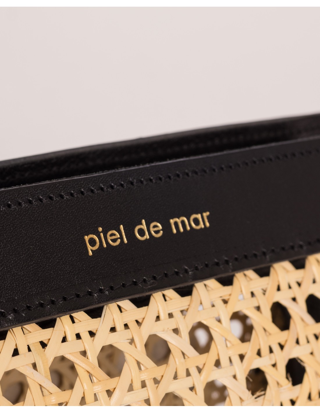 Small cane and leather bag, lightweight and functional, with removable shoulder strap.