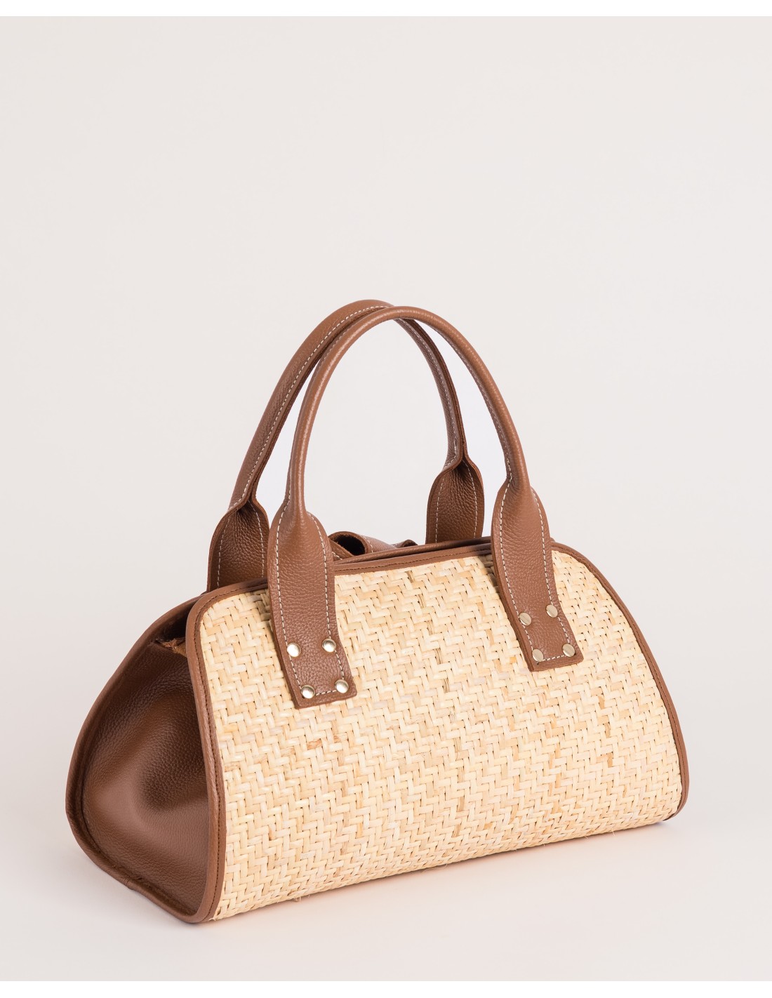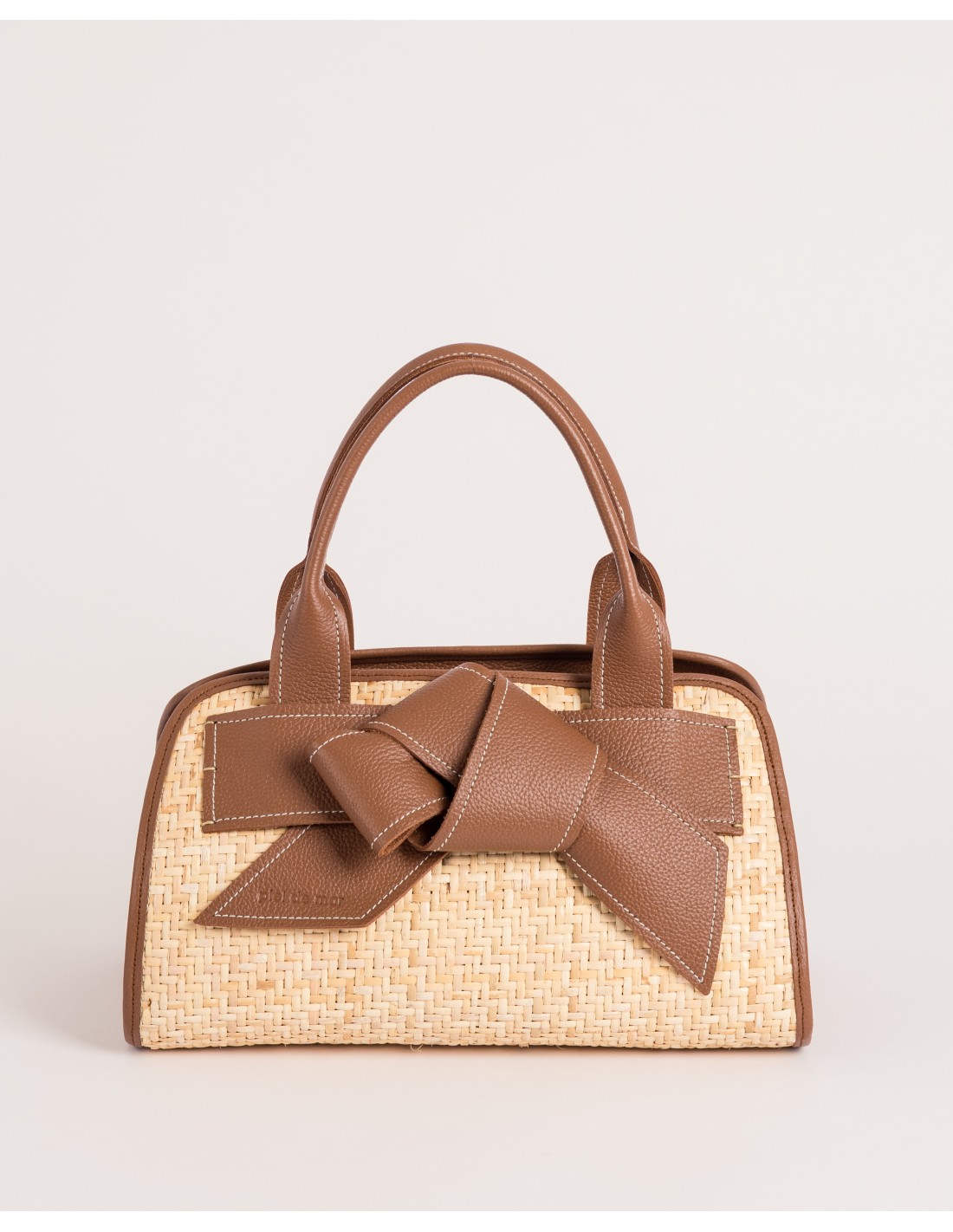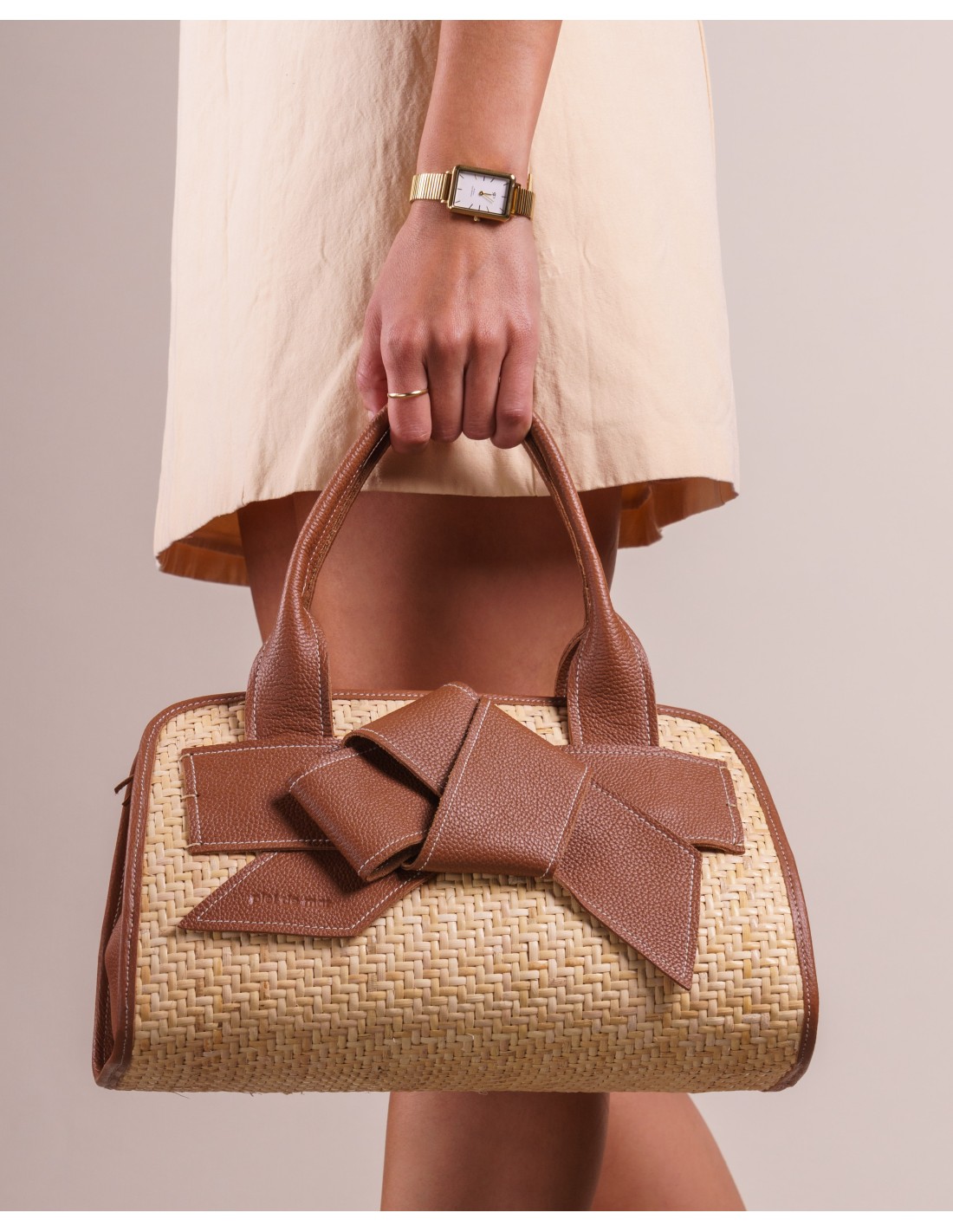 Crafted from natural wicker and finished with carefully selected cowhide leather, this design balances lightness and presence. Its signature leather bow remains true to the Valeria identity, adding character and a recognisable touch.