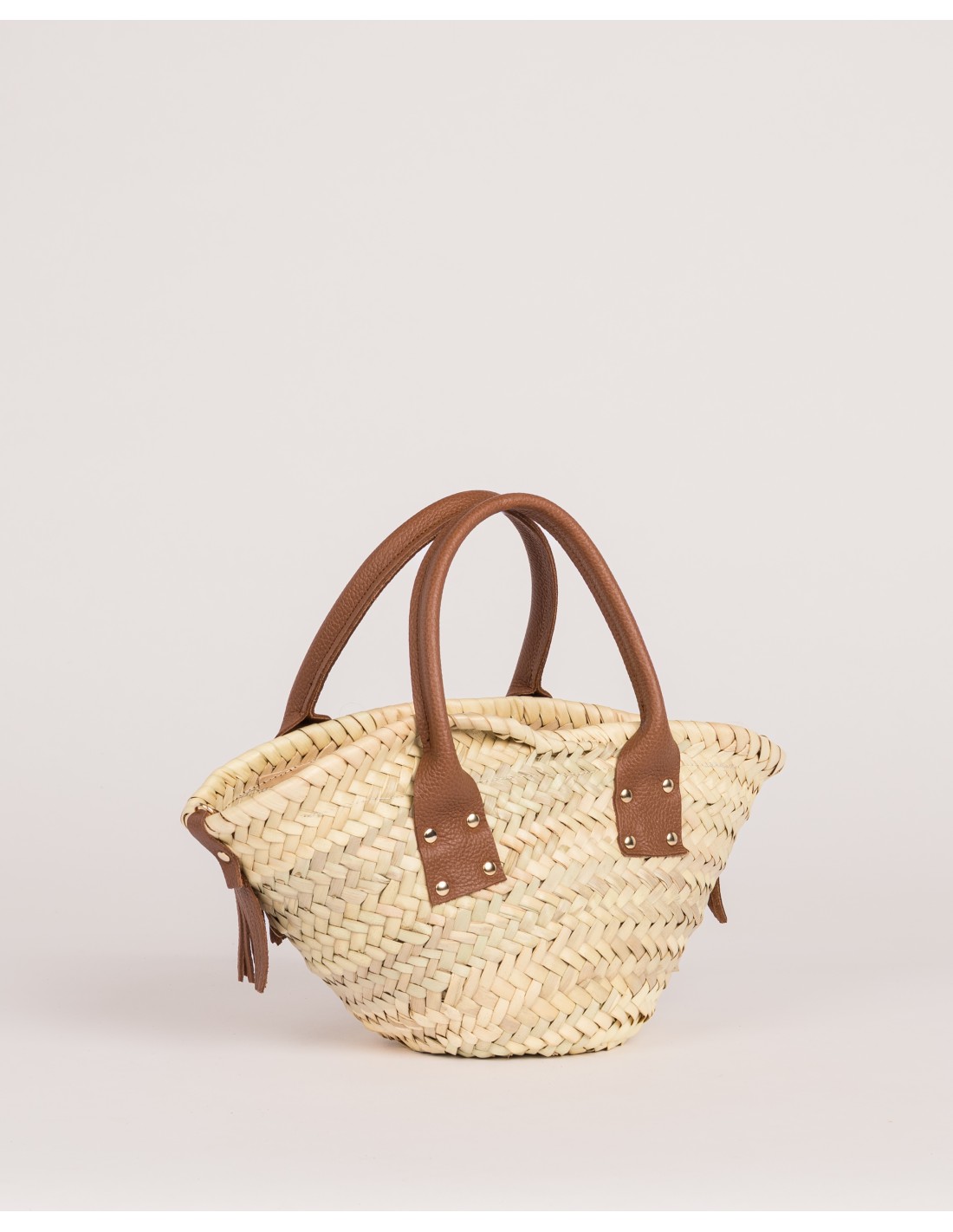 Tejido a mano en palma natural y rematado con piel, combina un tamaño compacto con un carácter marcado. Su diseño mini es perfecto para llevar lo imprescindible, manteniendo un equilibrio entre ligereza y presencia.