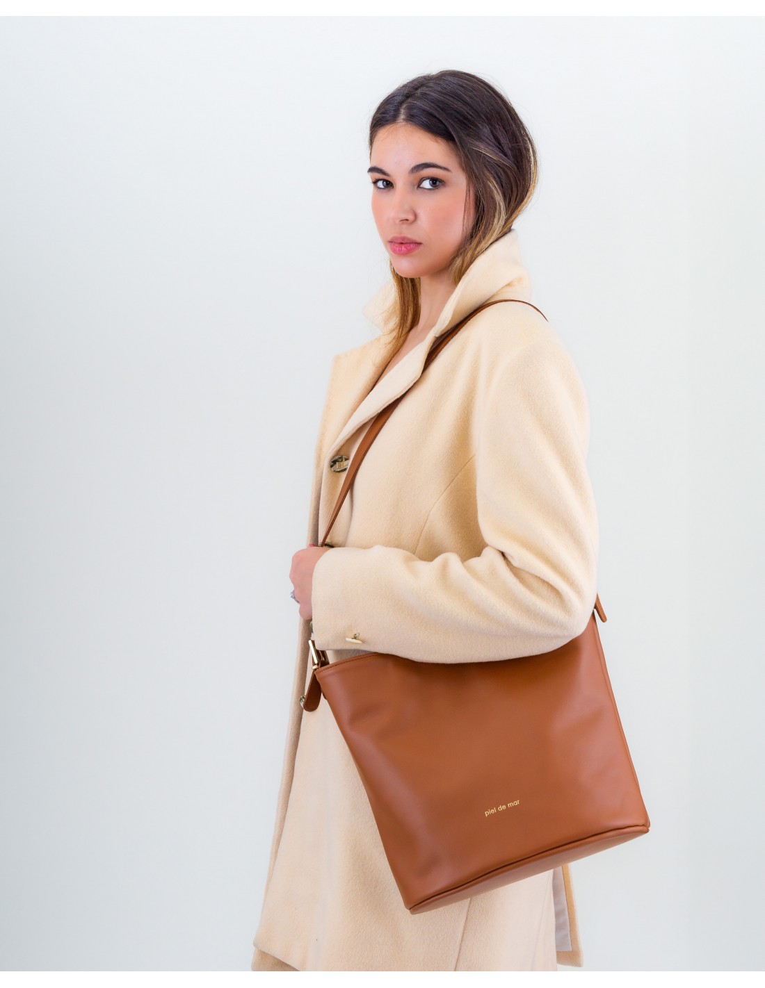 • Piel de vacuno tipo napa reciclada de la industria alimentaria y teñida con tintes vegetales, suave y ligera