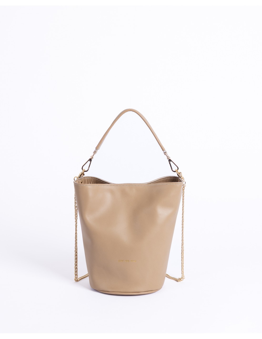 Bolso tipo cubo con asa de mano y cadena de quita y pon