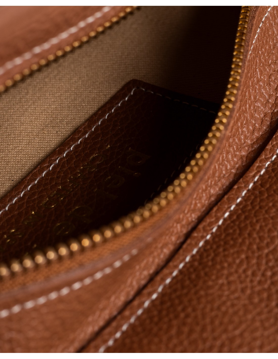 • Piel de vacuno tipo napa grabada reciclada de la industria alimentaria y teñida con tintes vegetales
