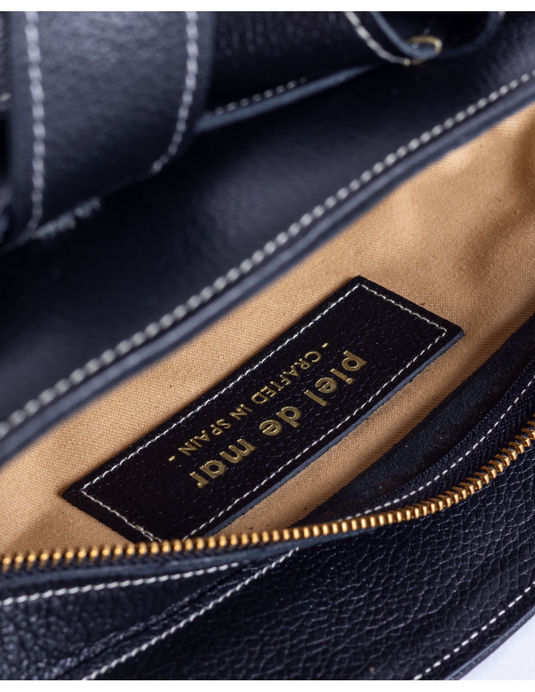 • Piel de vacuno tipo napa grabada reciclada de la industria alimentaria y teñida con tintes vegetales