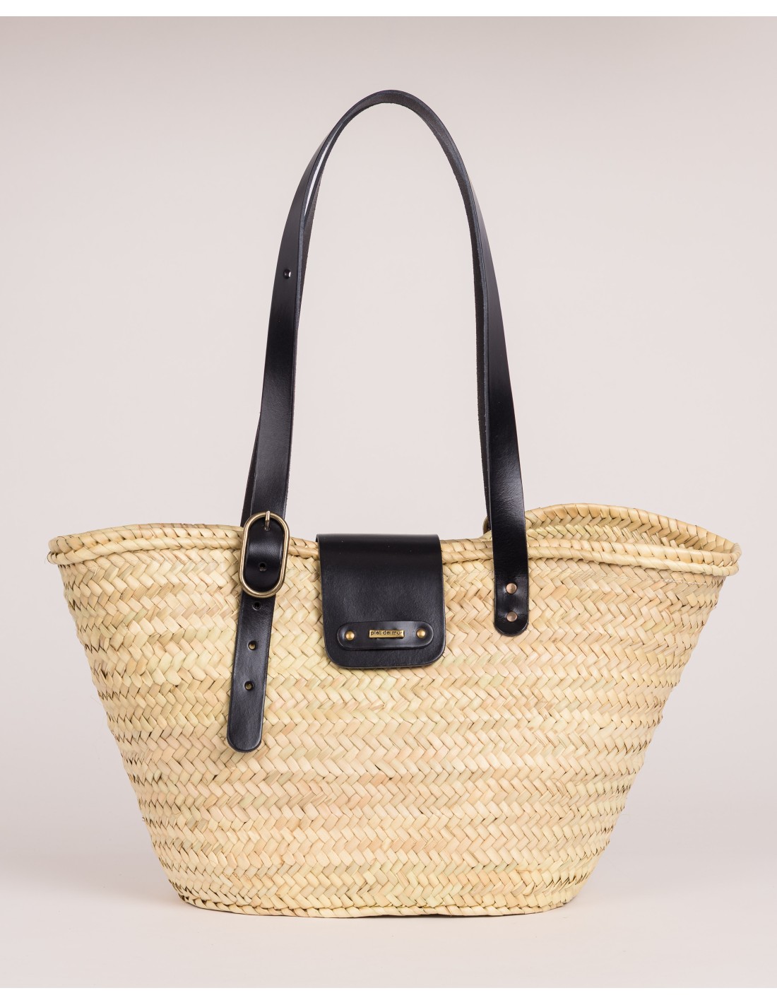 Está tejido a mano en palma natural por artesanos expertos y rematado con piel de vacuno, seleccionada y trabajada para mantener su carácter natural. El asa regulable permite llevarlo al hombro o mano, adaptándose con facilidad a cada momento.