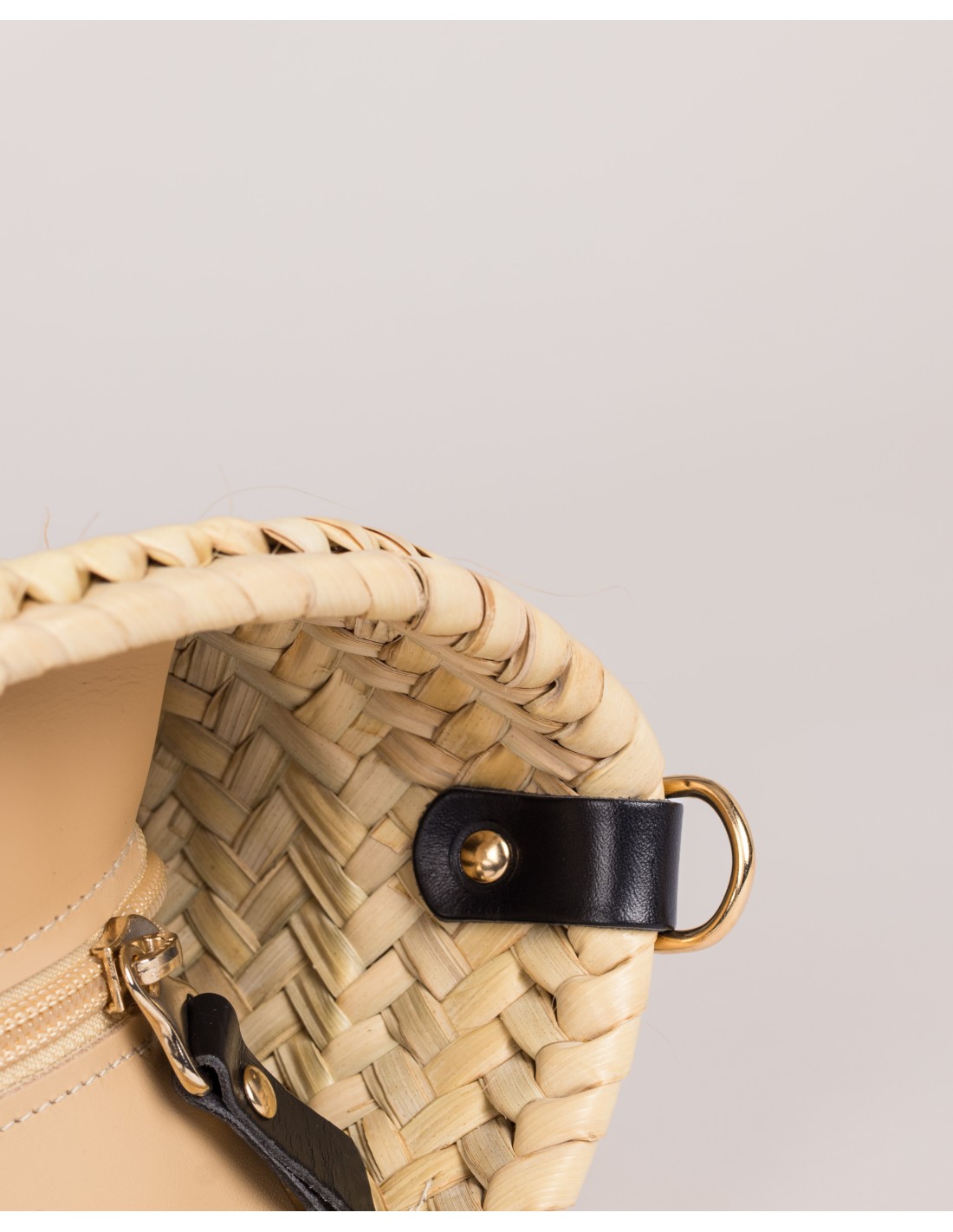 El detalle circular de fibra en el frontal aporta personalidad y refuerza su estética natural. Su tamaño compacto lo convierte en un modelo práctico, ideal para acompañarte en planes diarios y escapadas ligeras, con capacidad para lo que necesitas en el día a día.