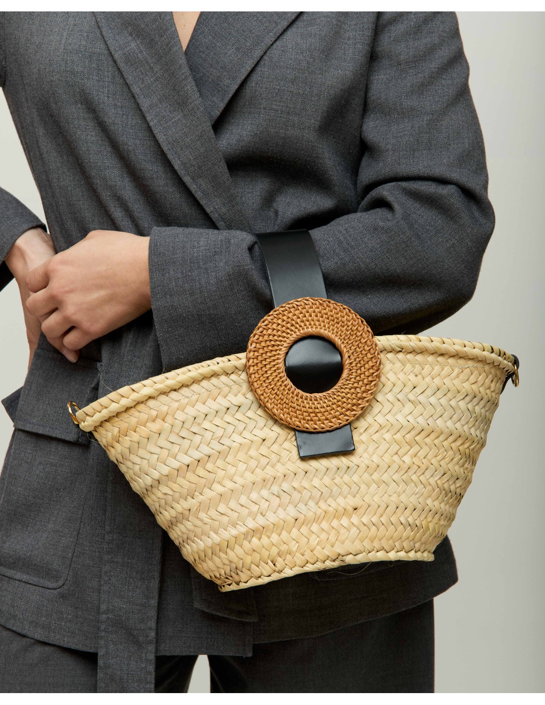 Simona Piccolo es un capazo de fibra vegetal, de tamaño compacto, con asa de cruzar en piel desmontable y detalle circular de rattan en el frontal. Un diseño ligero, pensado para el día a día y para llevar lo esencial, ofrece un plus de tamaño con respecto al capazo mini.