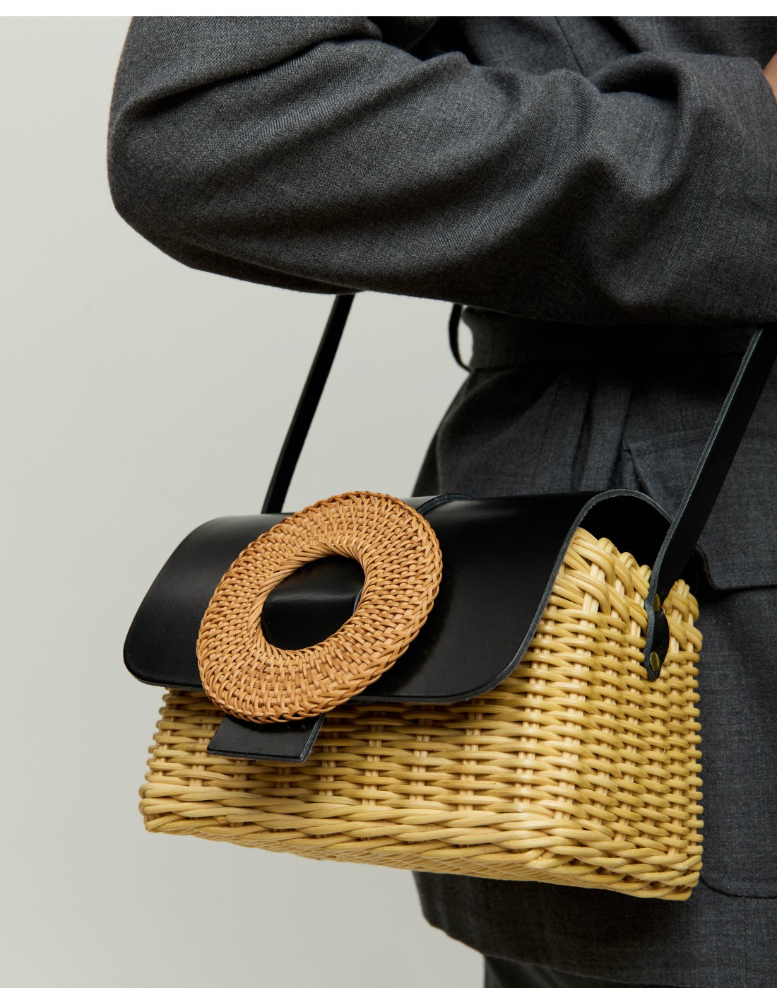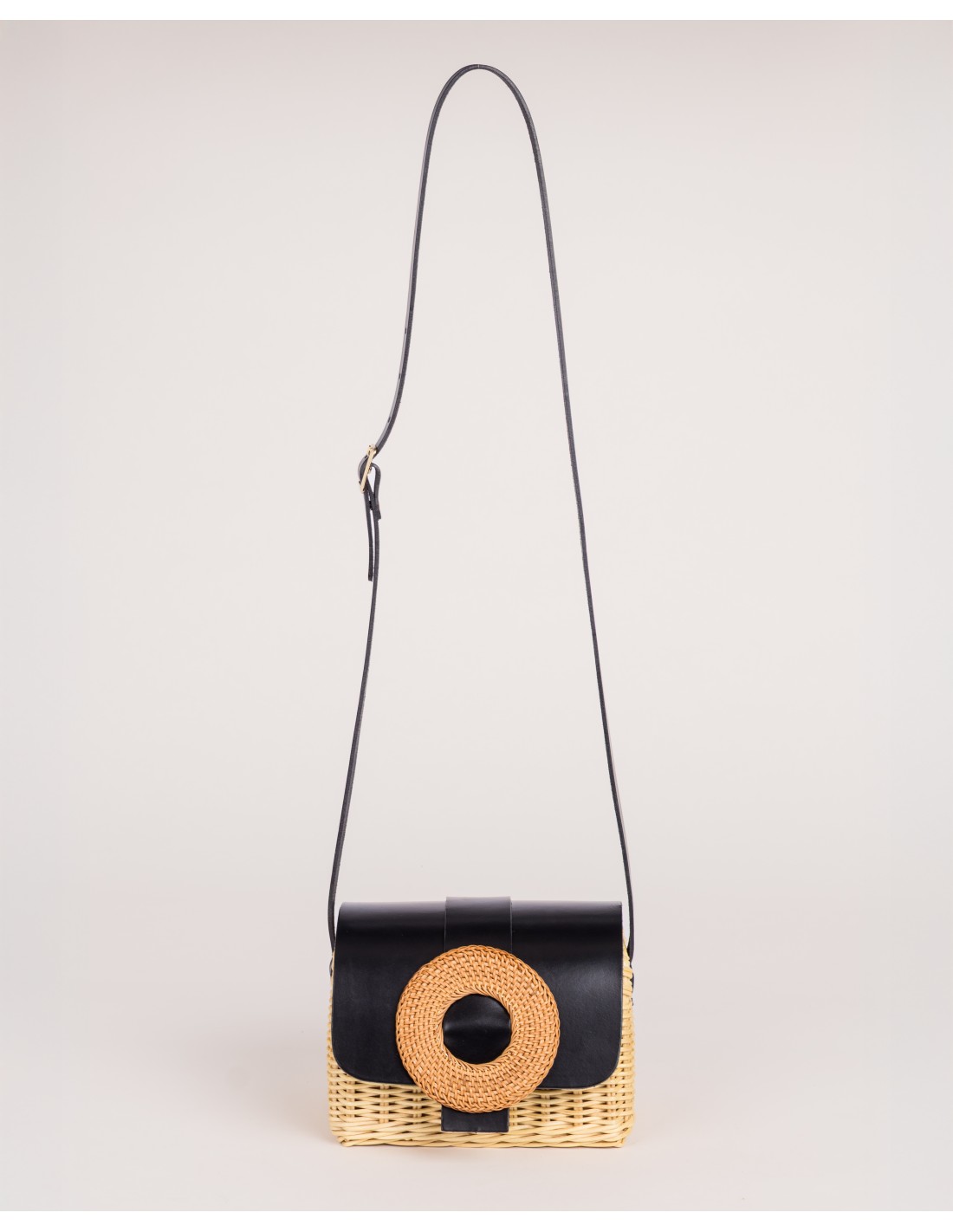 El bolso Simona rattan está confeccionado en médula de rattan, un material natural que aporta estructura y resistencia sin perder ligereza. Su diseño combina líneas limpias con detalles de piel, como el cierre frontal y el asa larga de cruzar, que permite llevarlo cómodamente colgado o al hombro.